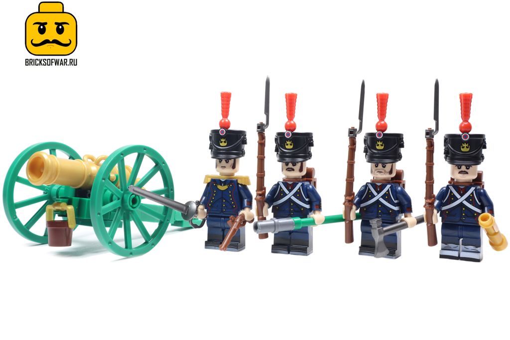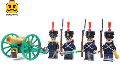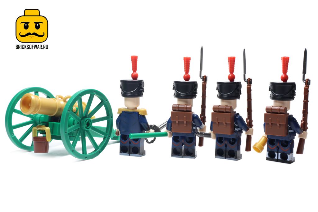 Набор из 4 фигурок, посвящен французским солдатам времен Наполеоновских войн и полностью совместимы с LEGO. В этом наборе вы найдете офицера и четырех артиллеристов с пушкой.