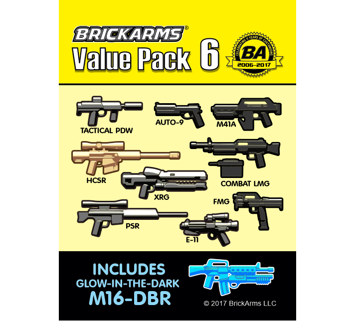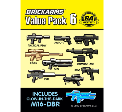 BrickArms - Value Pack 6 + автомат М16 светящийся в темноте