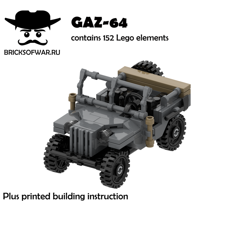 Набор советского внедорожника ГАЗ-64 из оригинальных деталей Лего. В комплекте цветная инструкция по сборке.
