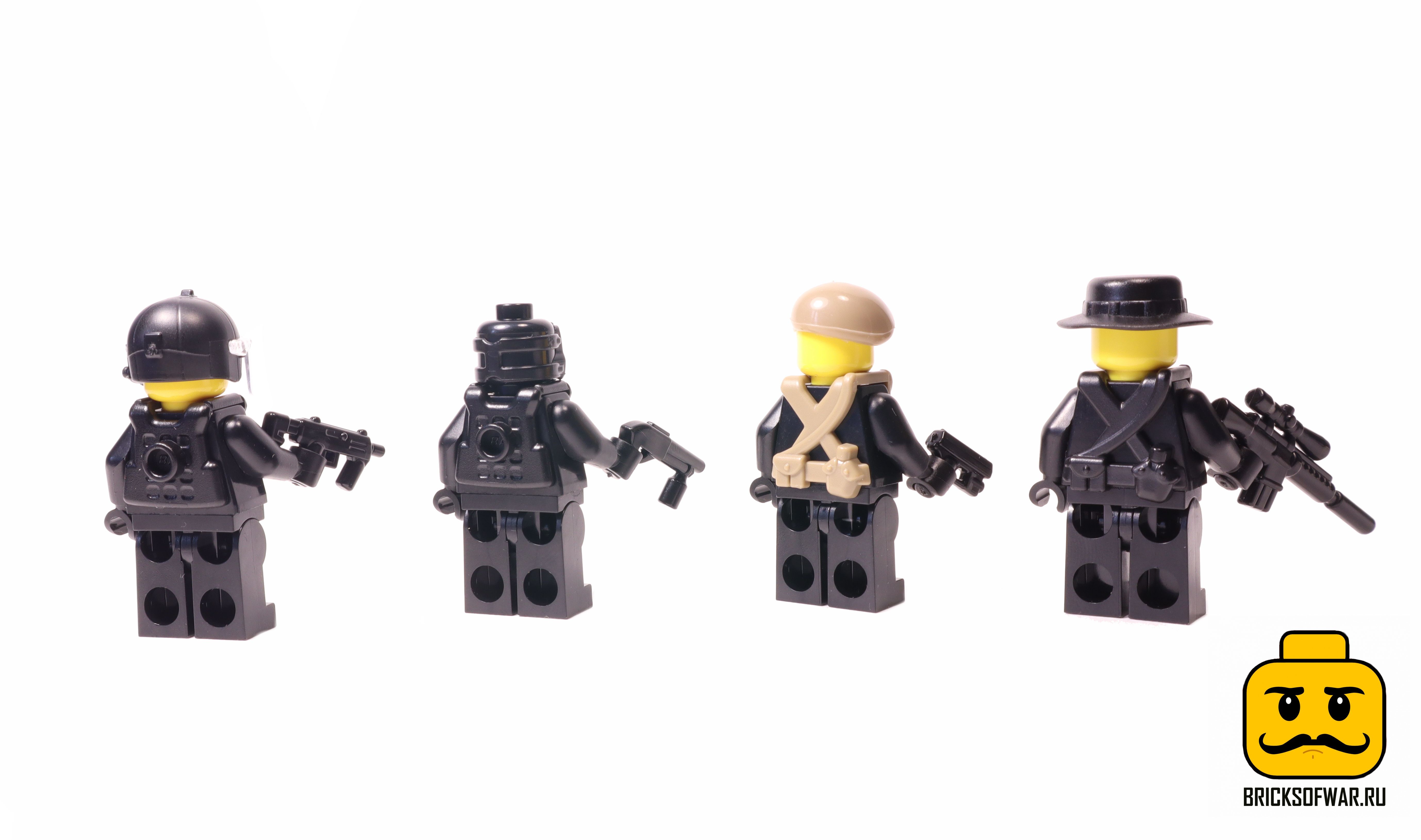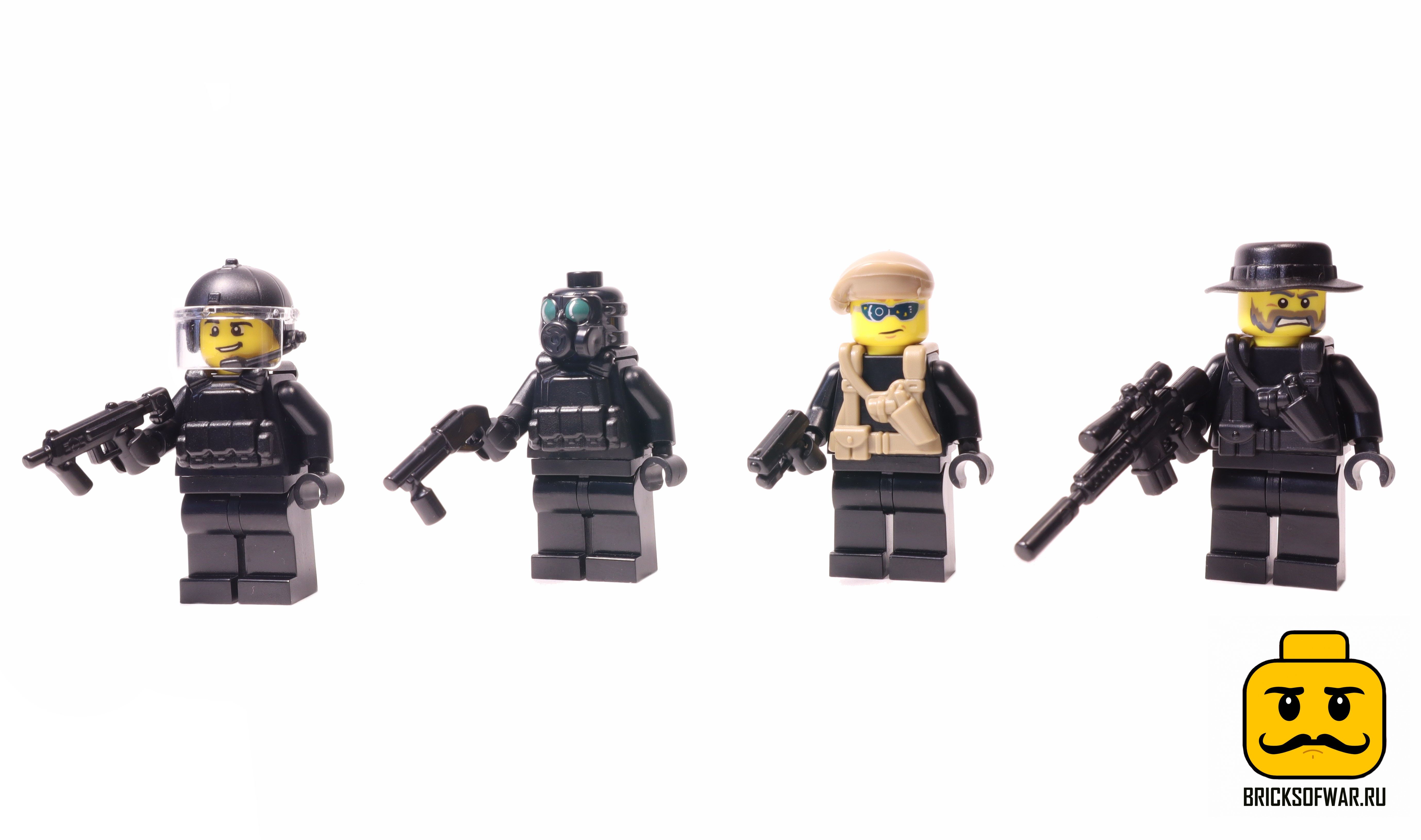 4 оригинальные минифигурки Лего с оружием и аксессуарами от американской компании БрикАрмс