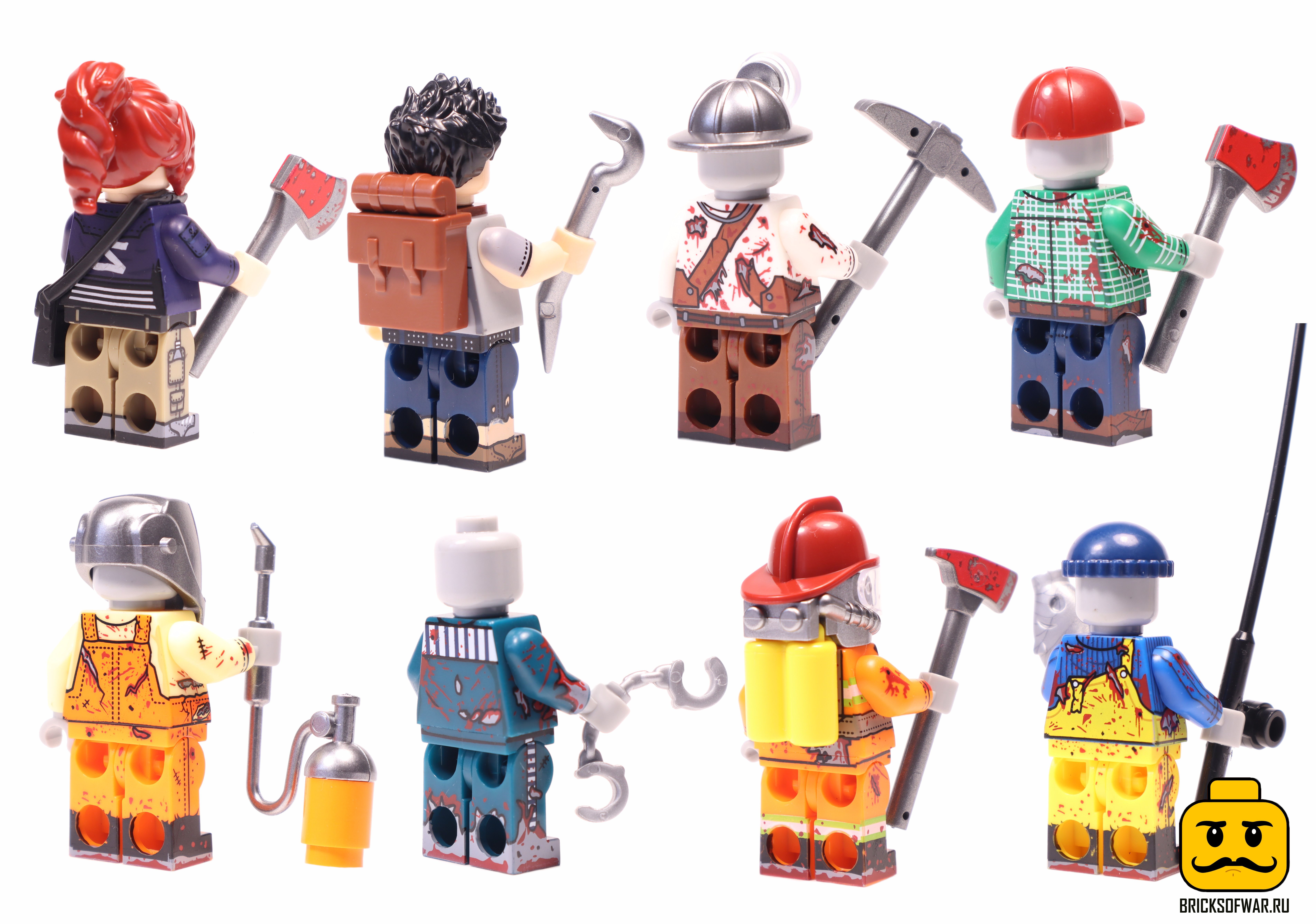Фигурки зомби в прошлом имели различные профессии, включая плотника, сварщика, пожарного, рыбака, шахтера и заключенного. Все зомби представлены с характерными для их профессии инструментами и атрибутами, такими как топор, сварочный аппарат, наручники, рыболовные снасти и т.д.