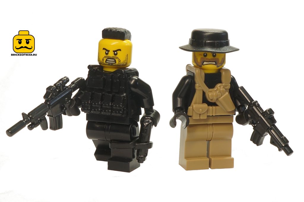 Две оригинальные минифигурки Лего с аксессуарами от американских компаний БрикАрмс и КомбатБрик.