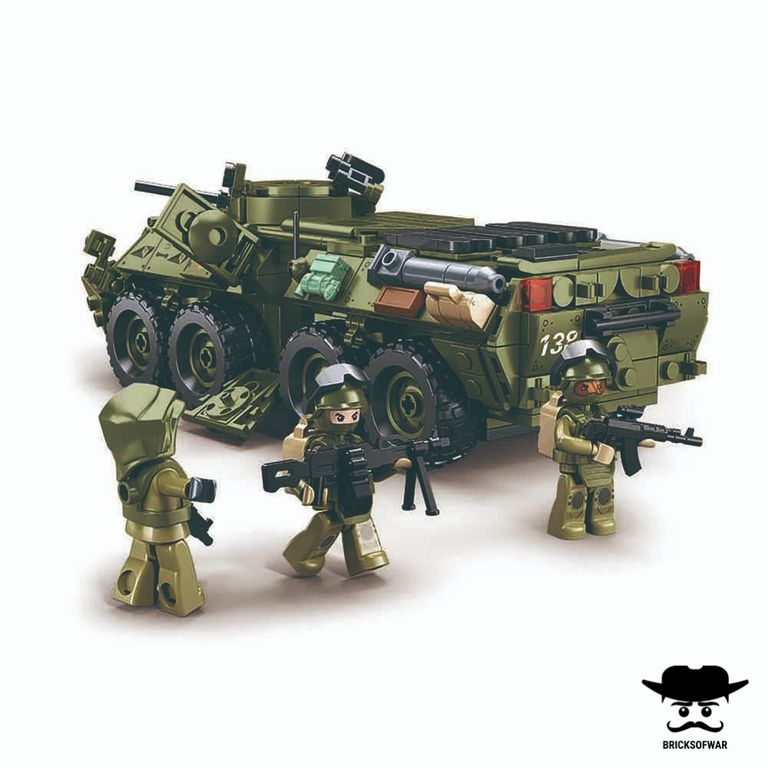 Создайте реалистичный российский военный транспорт с помощью конструктора, включающего БТР и 4 фигурки солдат. Этот набор идеально подойдет для поклонников сборных моделей и любителей военной техники.
