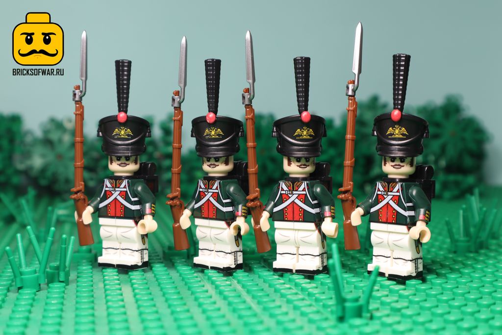 Набор из 4 фигурок, посвящен русским солдатам времен Наполеоновских войн и полностью совместимы с LEGO. В этом наборе вы найдете целый отряд гвардейцев русской Императорской армии!
