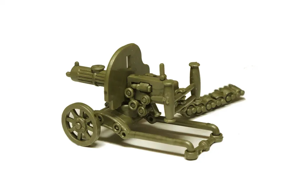 В наборе: пулемет Максим, 3 фигурки в пилотках, автоматчик, офицерв в плаще, 3 автомата ППШ.