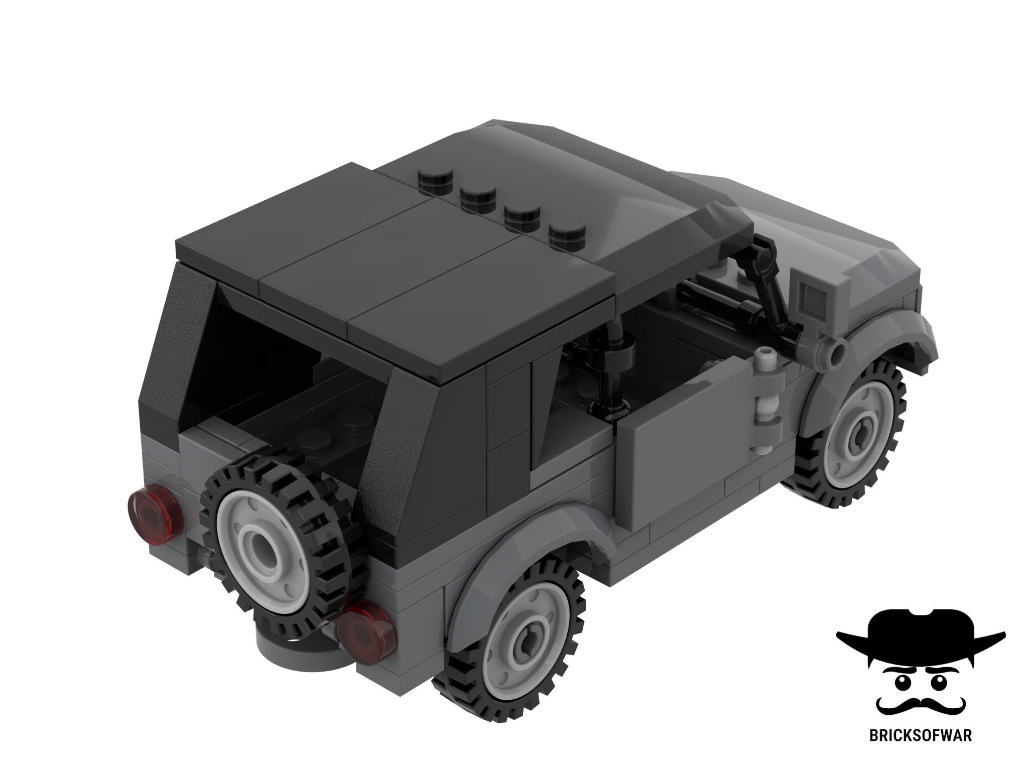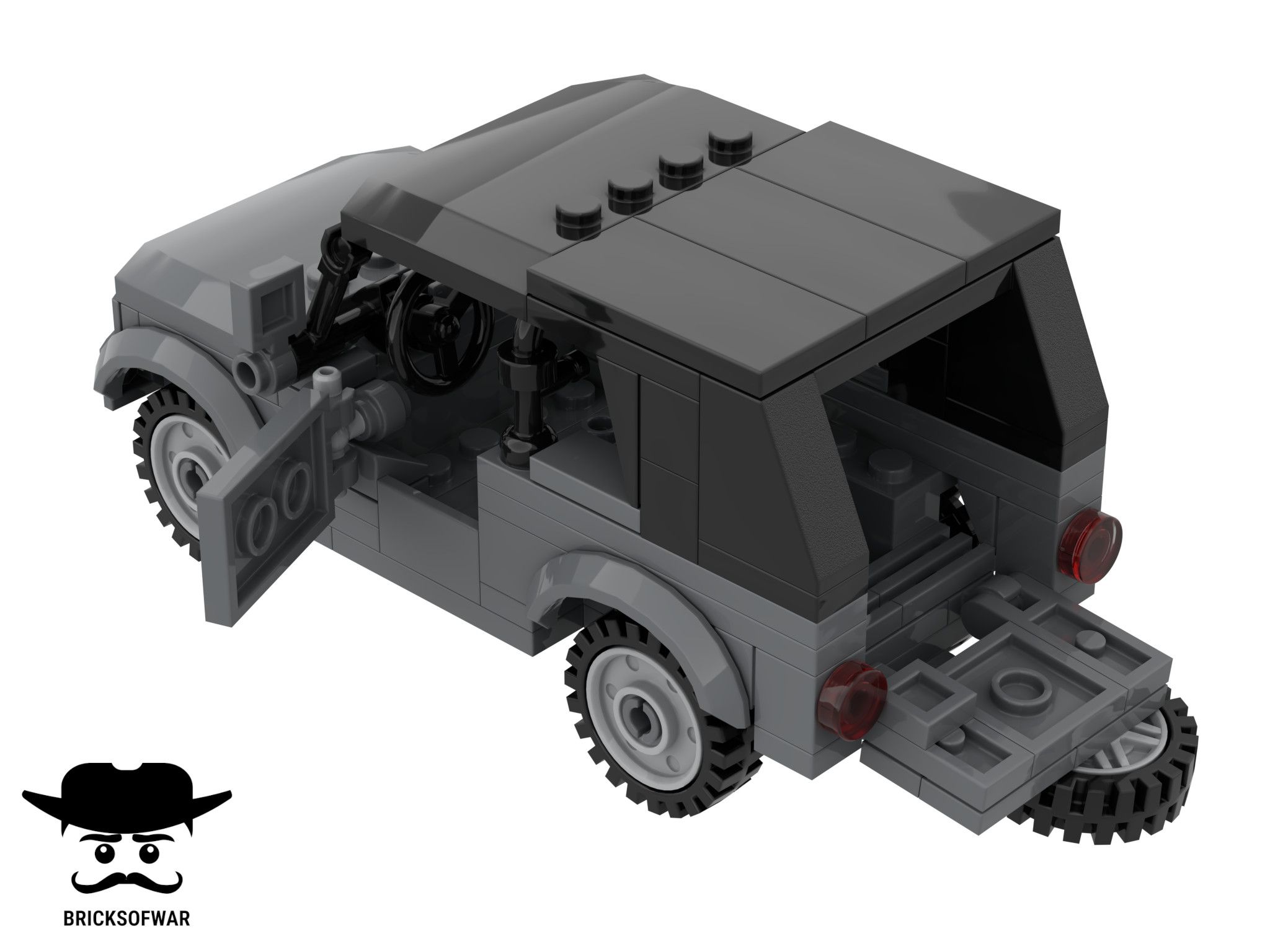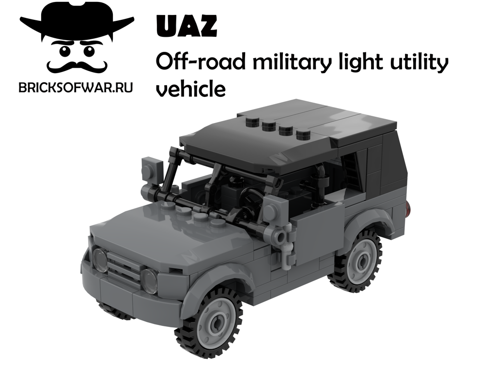 Вмещает две фигуркии спереди. Двери и банажник открываются. Крыша в передней части автомобиля снимается, что позволяет удобно сажать минифигурки за руль.
